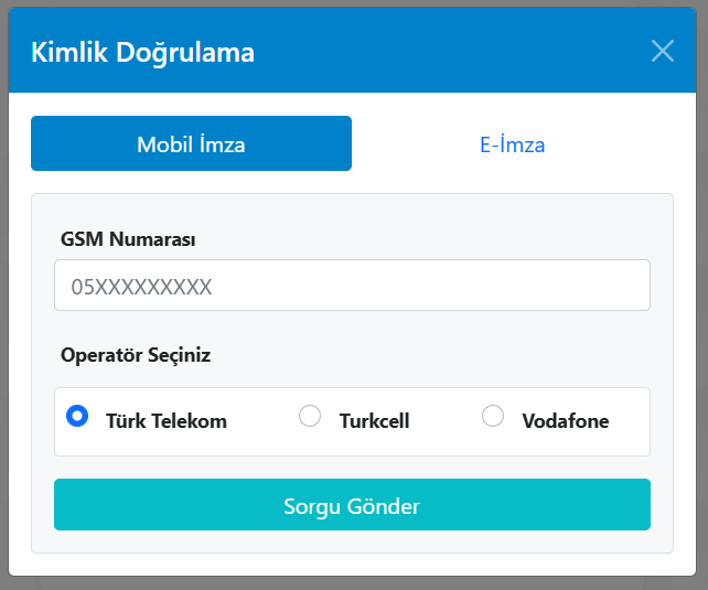 - Hem E-İmza hem de Mobil İmza doğrulama işlemleri 120 saniye içerisinde yapılmalıdır.